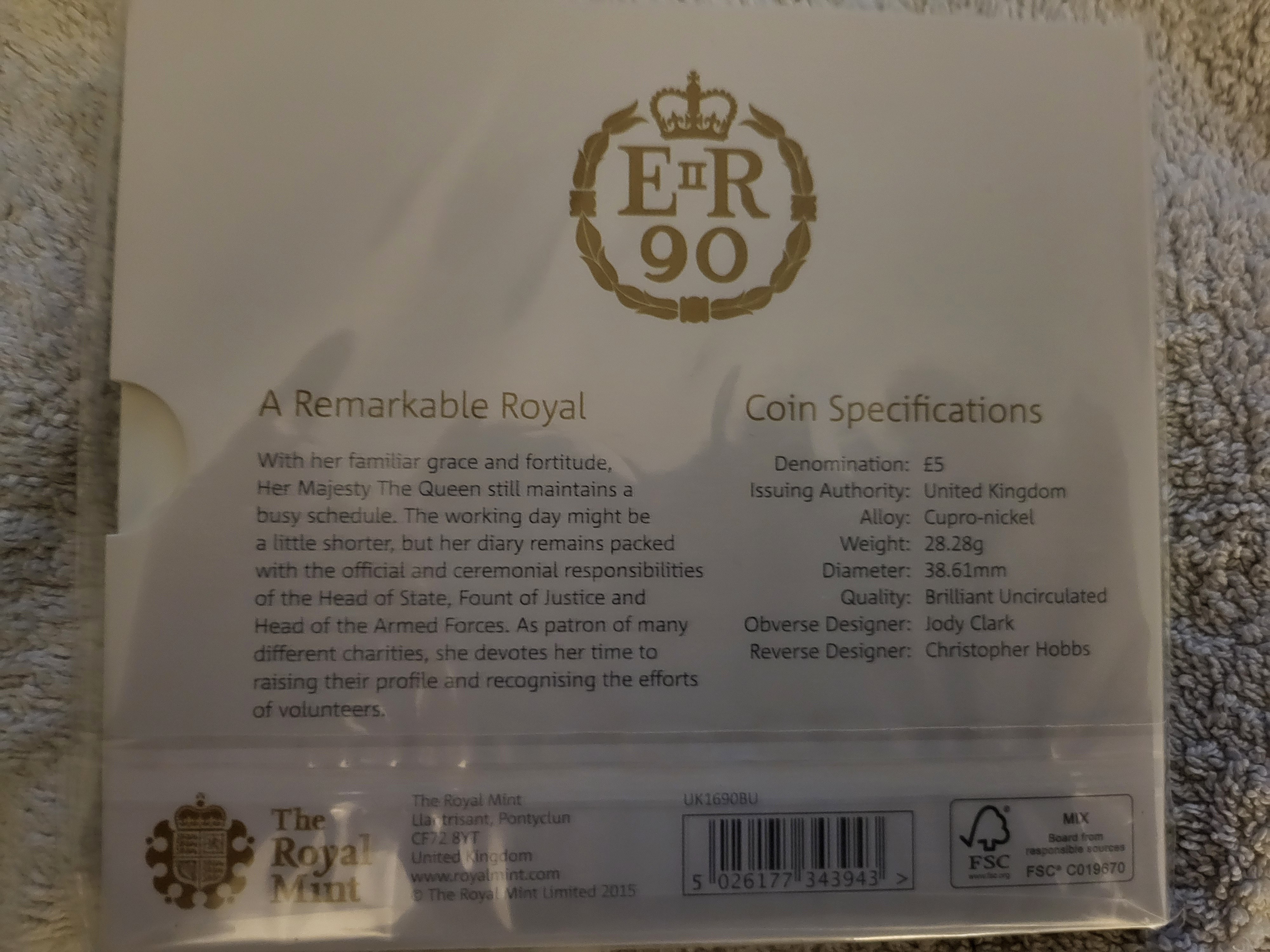 Royal Mint Issued £5 Coin to Celebrate The Queens 90th (2016)